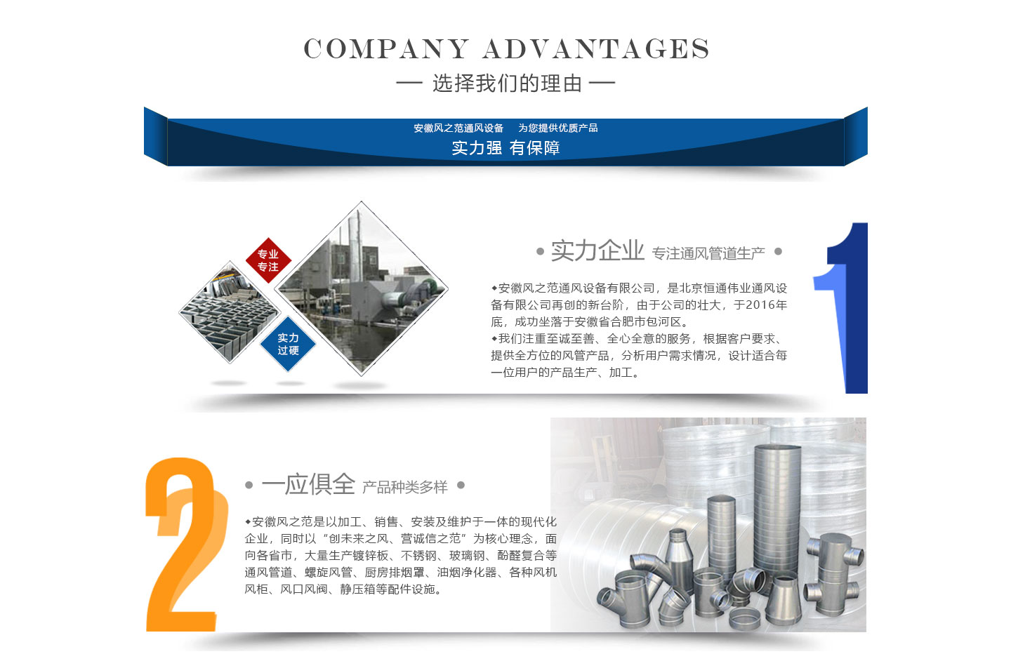安徽風(fēng)之范通風(fēng)設(shè)備有限公司,是北京恒通偉業(yè)通風(fēng)設(shè)備有限公司再創(chuàng)的新臺(tái)階,多年來,公司員工憑著“誠信敬業(yè)、團(tuán)結(jié)拼搏、勇于開拓、務(wù)實(shí)進(jìn)取”的企業(yè)精神,先后承接了多項(xiàng)重點(diǎn)工程項(xiàng)目,使公司健康穩(wěn)步發(fā)展。現(xiàn)由于公司的壯大,業(yè)務(wù)的拓展,又于2016年底,成功坐落于安徽省合肥市包河區(qū)。本公司生產(chǎn)設(shè)備精良,技術(shù)力量雄厚,質(zhì)保體系完善!讓用戶體驗(yàn)到,貼心的服務(wù),無憂的售后!風(fēng)之范是以加工、銷售、安裝及維護(hù)于一體的現(xiàn)代化企業(yè),同時(shí)以“創(chuàng)未來之風(fēng)、營誠信之范”為核心理念,面向全國各省市,大量生產(chǎn)鍍鋅板、不銹鋼、玻璃鋼、酚醛復(fù)合等通風(fēng)管道、螺旋風(fēng)管、廚房排煙罩、油煙凈化器、各種風(fēng)機(jī)風(fēng)柜、風(fēng)口風(fēng)閥、靜壓箱等配件設(shè)施。廣泛承接商場、工廠、酒店、寫字樓、地下室等,消防排煙工程、除塵凈化工程、室內(nèi)通風(fēng)工程、暖通空調(diào)工程、廚房排煙凈化工程。我們力求上進(jìn),追求,歡迎各界人士技術(shù)指導(dǎo),經(jīng)濟(jì)合作,共創(chuàng)美好明天!
